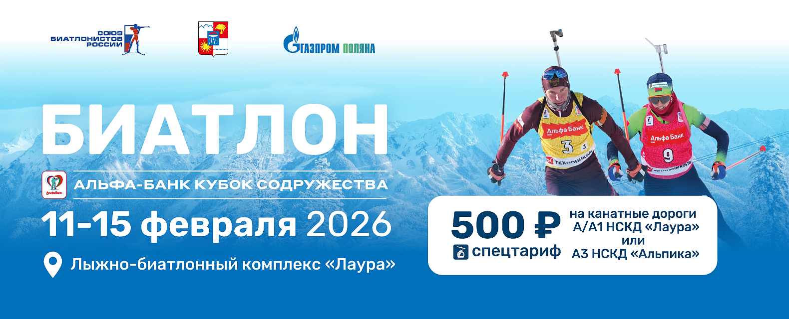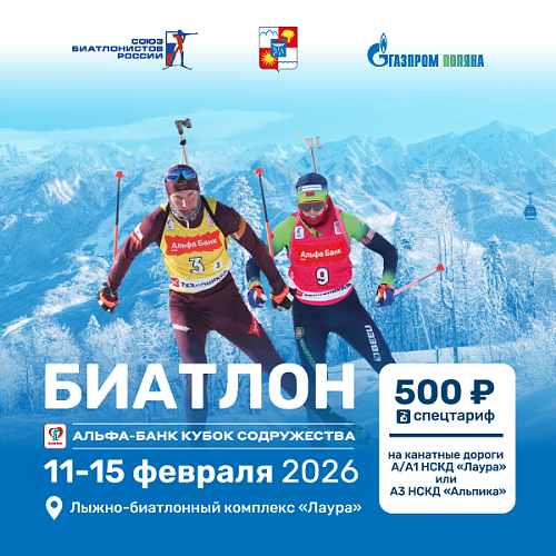 С 11 по 15 февраля на легендарном олимпийском Лыжно-биатлонном комплексе «Лаура» курорта «Газпром Поляна» пройдёт пятый этап международных соревнований Альфа-Банк Кубок Содружества по биатлону с участием сборных команд Российской Федерации и Республики Беларусь.