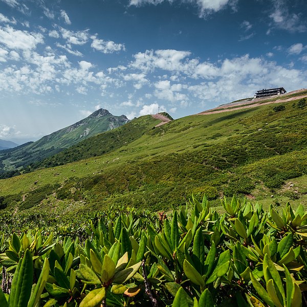 С высоты 1389 метров открывается живописная панорама Кавказских вершин. Открытый бассейн соединен