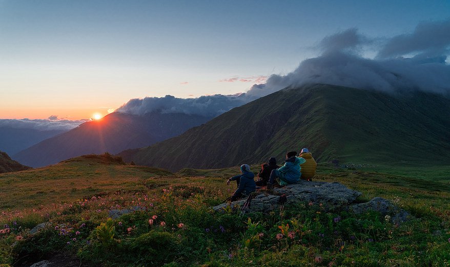 После перевала тропа идет уже не по лесу, впереди горные просторы и пьянящая красота вокруг. В мае, июне, июле, августе, сентябре природа этих мест преображается постоянно.