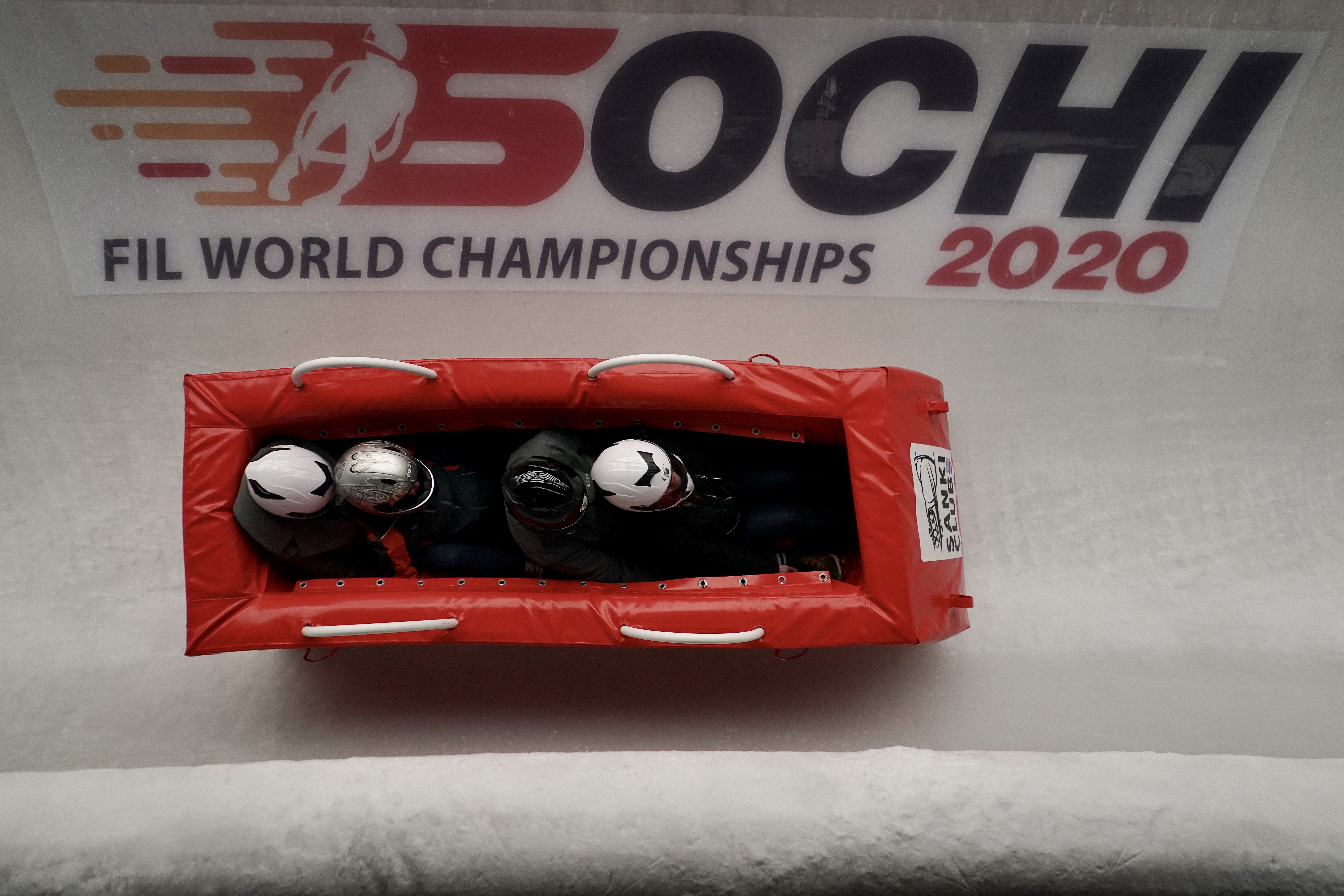 Спуски на единственной в России олимпийской санно-бобслейной трассе.