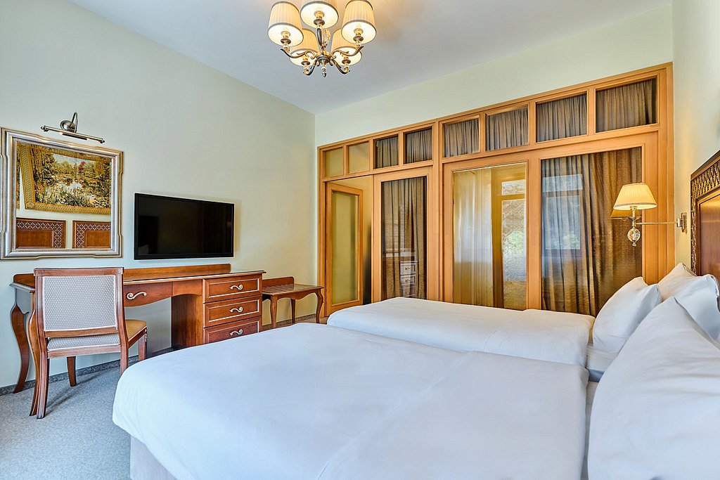 Продуманность каждой детали интерьера и классическая сдержанность этих номеров площадью 30 кв.м. подарит Вам комфорт и уверенность в отличном выборе.