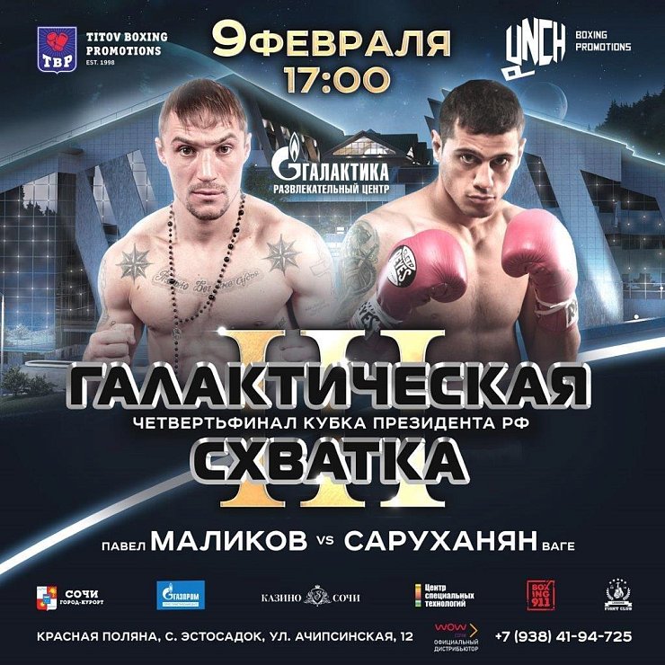 9 февраля в Галактике пройдет поединок на Кубок Президента РФ по профессиональному боксу в легком и первом среднем весе.